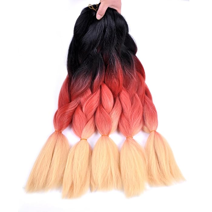 Buy Bacana Ombre Braiding Hair Black Red Orange Yellow 5pcs Synthetic Hair Extensions For Braiding Twist Crochet Braids Box Braids Hair Ombre Colors 3 Tone 24 Inch Online At Desertcart India